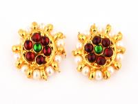 white pearl red stone stud